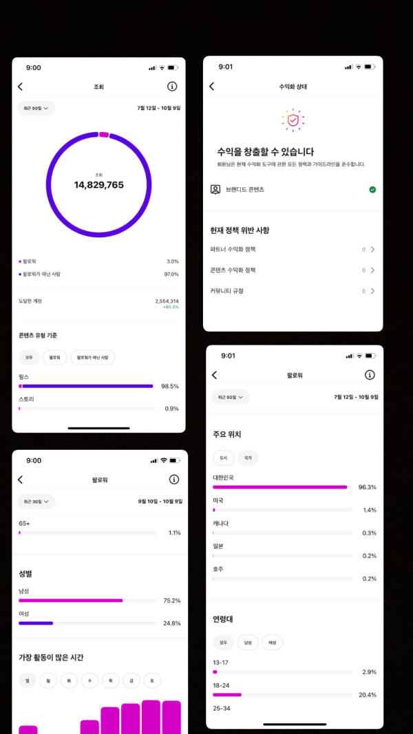조회수는 3개월 1480만, 9월한달 487만 이라고 뜨네요