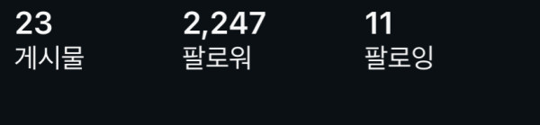 게시물 23개, 8-10만 이상 조회수 게시물 21개, 팔로워 2000명대