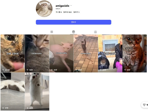 인스타그램 고양이 채널 판매해요 (팔로워 1160명 이상)