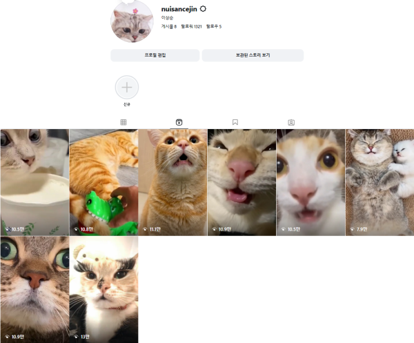 인스타그램 고양이 채널 판매해요 (팔로워 1320명 이상)