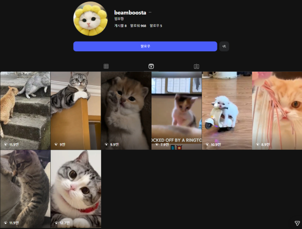 주로 고양이 채널로 운영했습니다