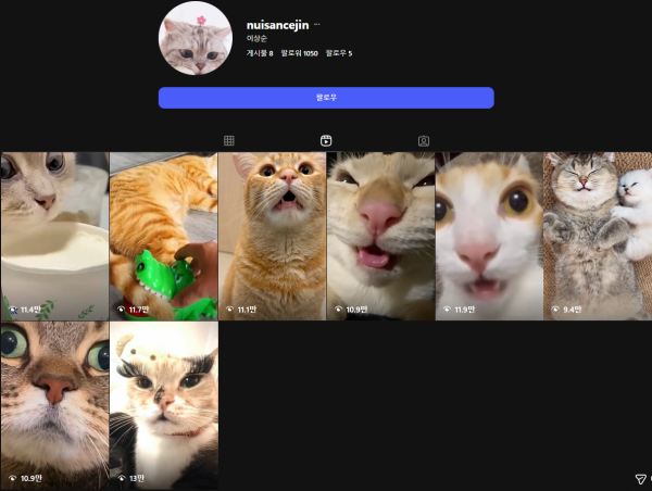 인스타그램 고양이 채널 판매해요 (팔로워 1050명 이상)