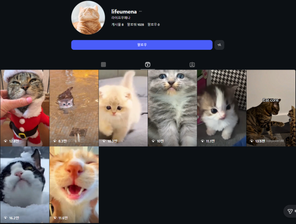 주로 고양이 채널로 운영했습니다
