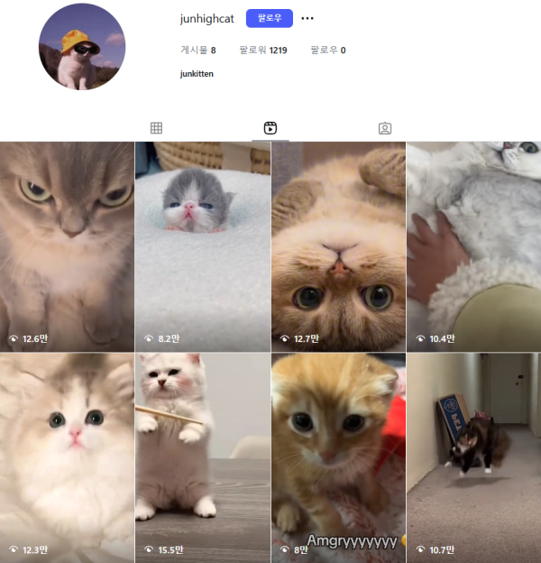 인스타그램 고양이 채널 판매해요 (팔로워 1210명 이상)