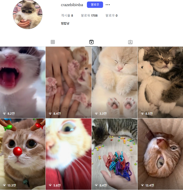 인스타그램 고양이 채널 판매해요 (팔로워 1140명 이상)