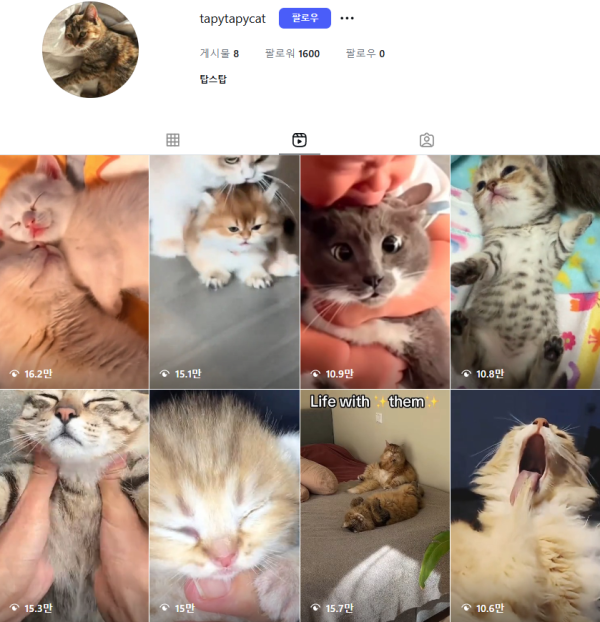 인스타그램 고양이 채널 판매해요 (팔로워 1600명 이상)