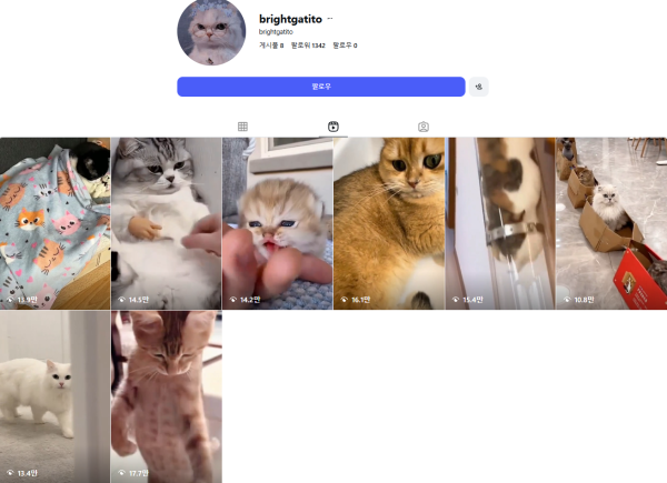 인스타그램 고양이 채널 판매해요 (팔로워 1340명 이상)