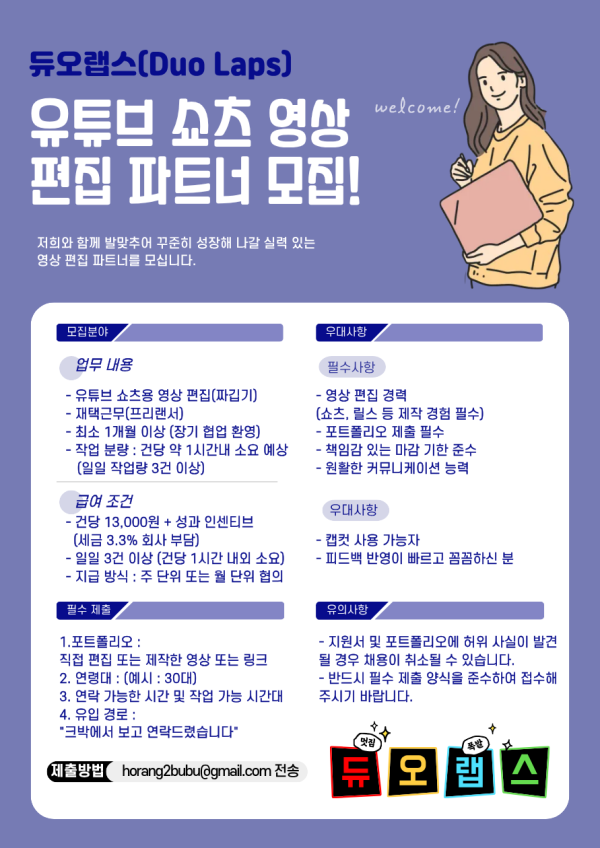 - 숏츠 편집자 구합니다 건당 13000원