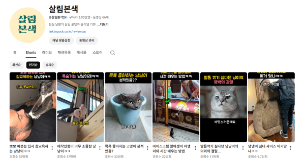 동물 쇼츠로 운영하다 최근 쇼핑 쇼츠로 전환했습니다.