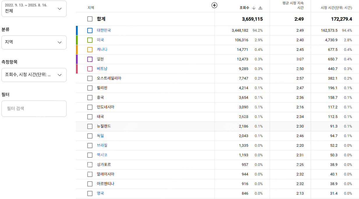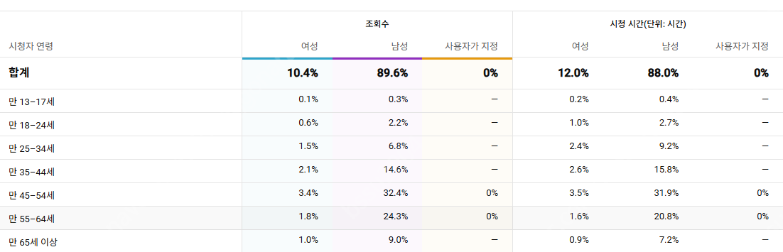 전체기간 대한민국 시청자 94프로 이상 채널이며
