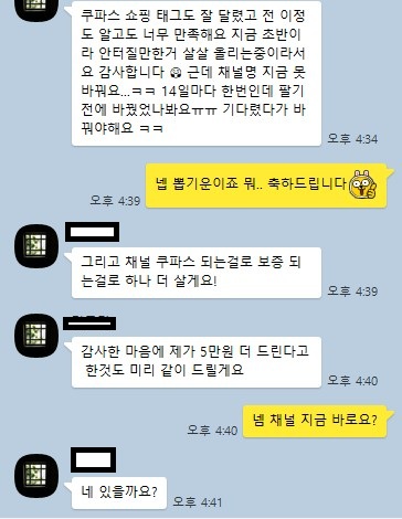 그냥 다~~ 알려드려요~ 저와 고객들의 대화내용을 원하시면 얼마나 만족을 하고 계시는지 보여드리겠습니다.