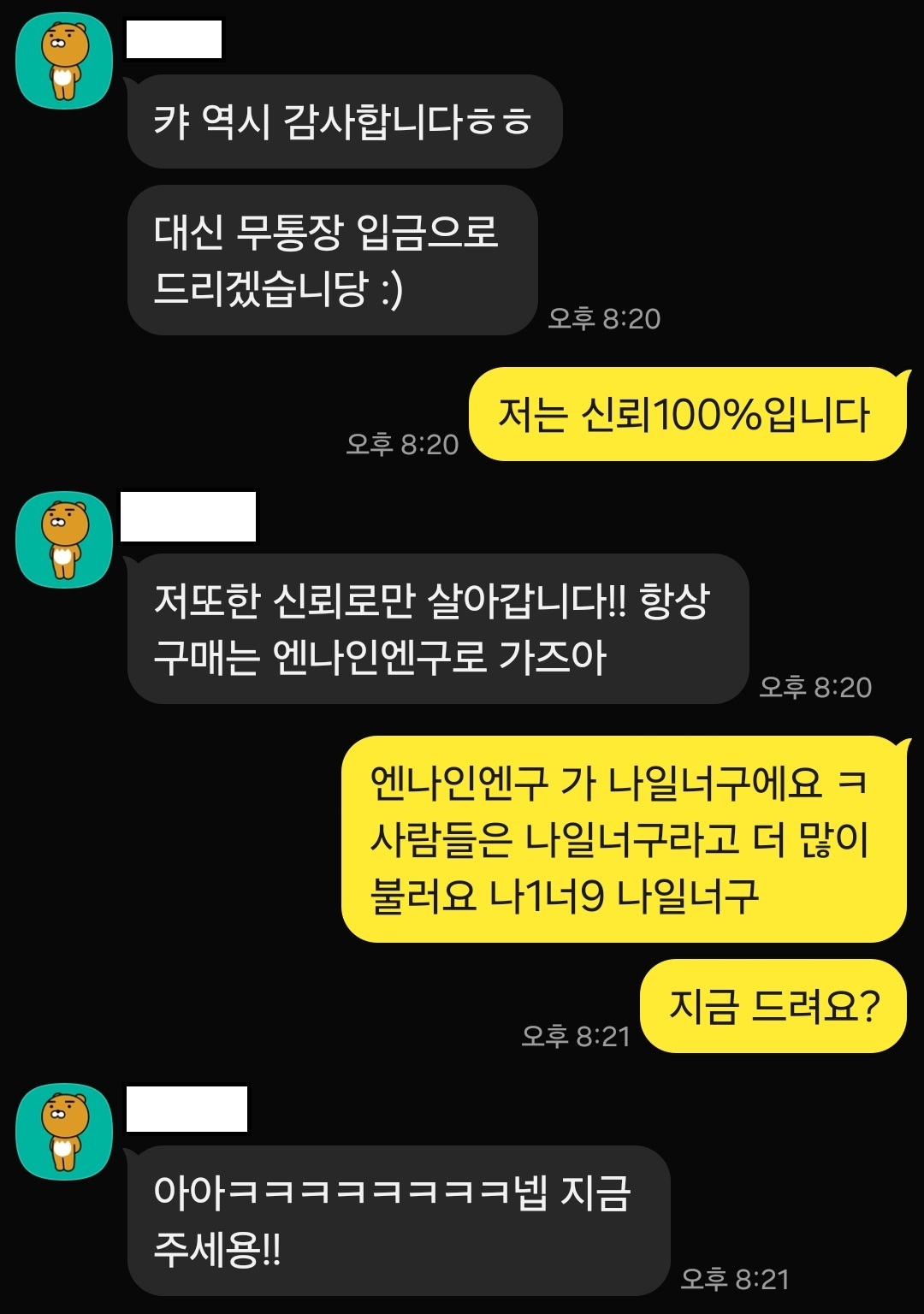 그냥 다~~ 알려드려요~ 저와 고객들의 대화내용을 원하시면 얼마나 만족을 하고 계시는지 보여드리겠습니다.
