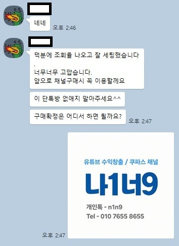 구매한 채널도 나중에도 계속 연락하며 도움이 필요할때 다 상담드리고있어요~