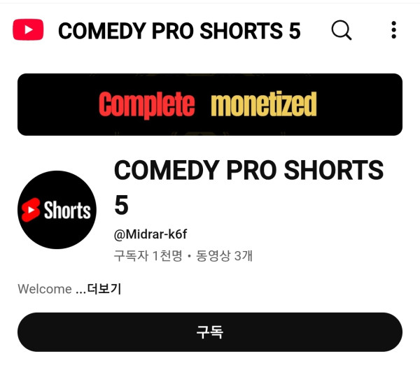 수익창출 요건 달성한 채널입니다. 생성된지 얼마 안된 채널이며