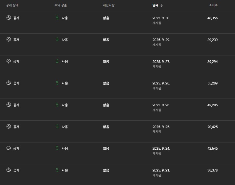 영상 업로드를 최근 하지 않았지만 실시간 조회수 약 1000 정도는 발생중 입니다