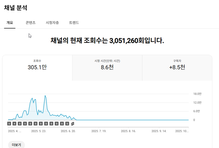주의, 경고 없습니다. 현재 조회수 꾸준하게 나오고 있습니다. 8500명 중 95퍼 이상 국내 구독자입니다