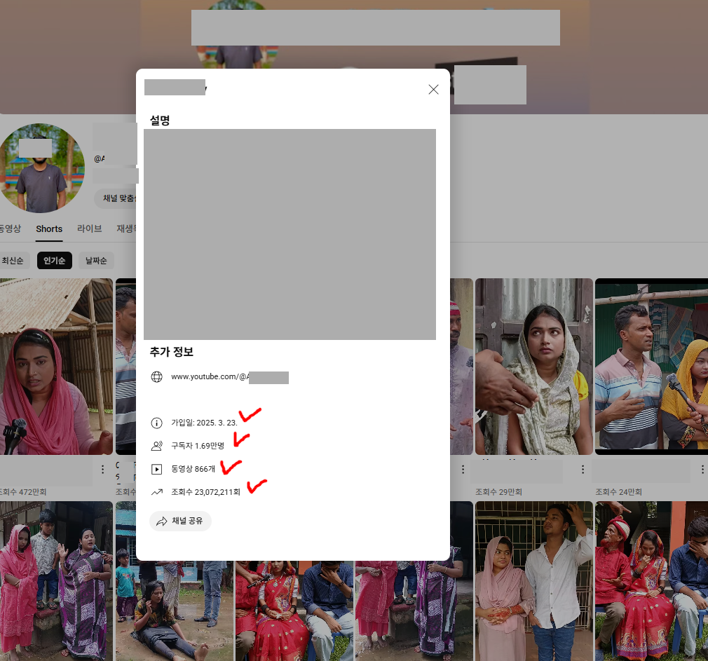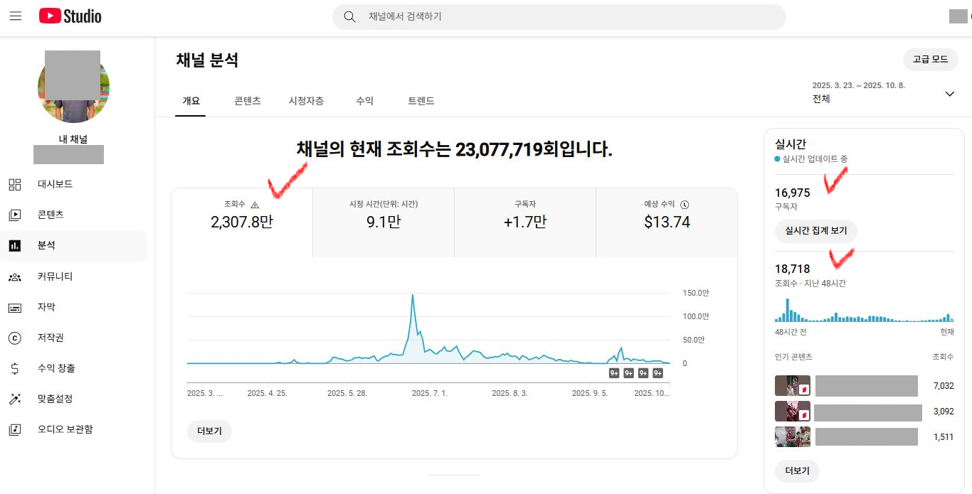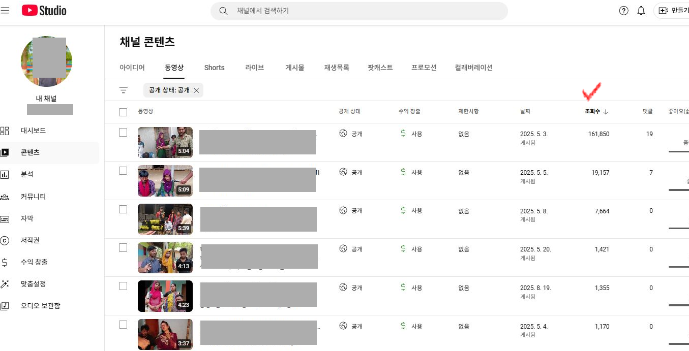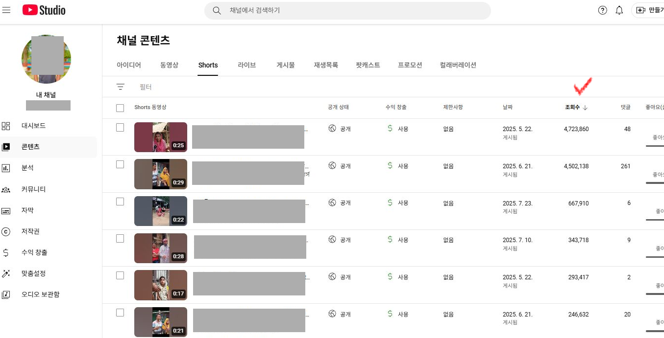 최근 쇼츠 영상들의 조회수도 양호한 편입니다.