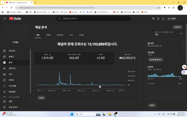 제가 직접 처음부터 키운 순수 국내 채널이며 롱폼 채널입니다 (개설일자 2021년)