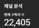 22000 실제 구독자 입니다 . 조작채널은 1주만에 1만명이 2천명이 되기도 합니다