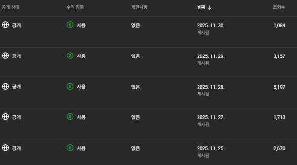 한국 영상으로 조회수 확인 완료 계속 업로드 추가중