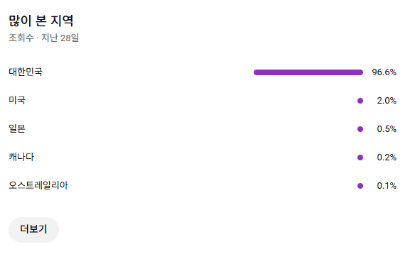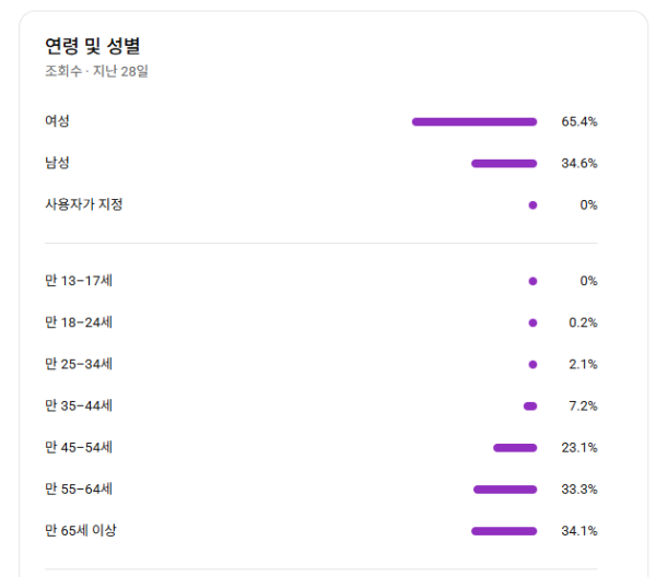 국내 구독자만으로 이루어진 채널입니다. 나이대가 40~60대로 이루어진 시니어 컨텐츠입니다.