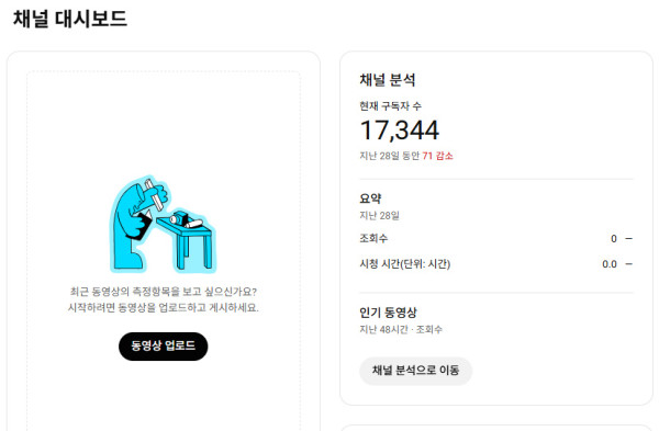 기존에 있던 해외 컨텐츠는 전부 삭제해서 지금은 아무 컨텐츠 없는 빈 채널입니다.