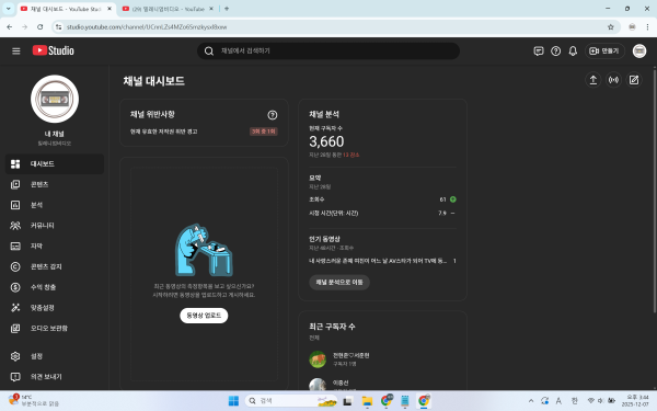 - 이전글구독자 1,232명 수익창출 유튜브 채널2025.12.14