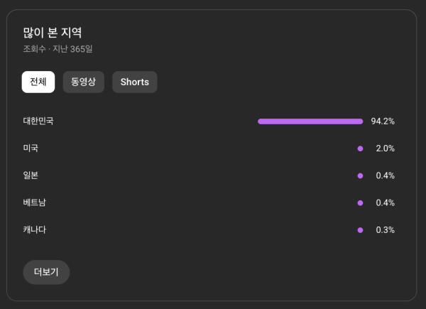 현재 구독자 대한민국 94.2%, 45-54세 49.4%인 채널입니다.