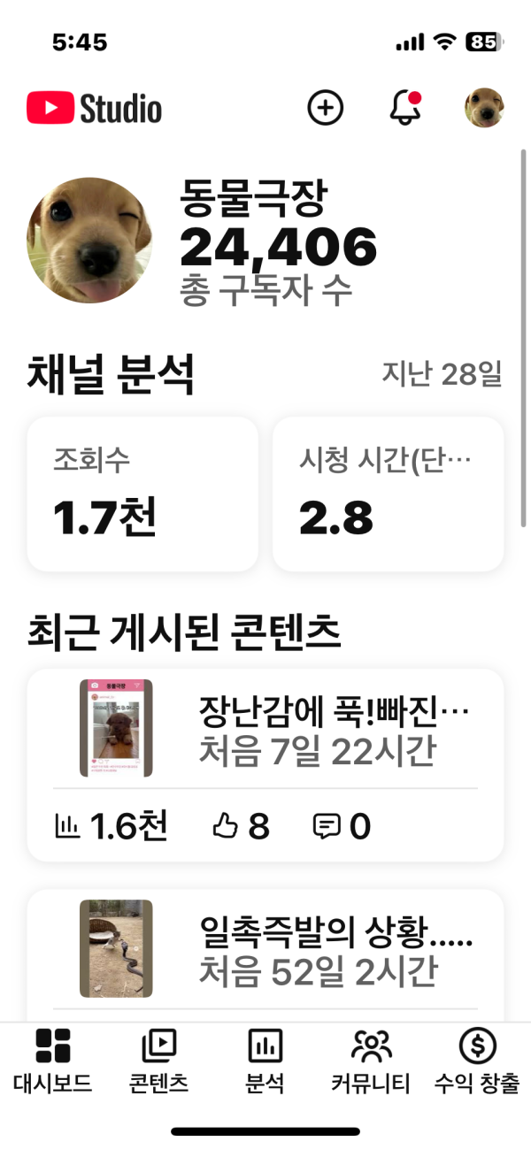 유튜브 시니어 타겟 동물 쇼츠 채널입니다.