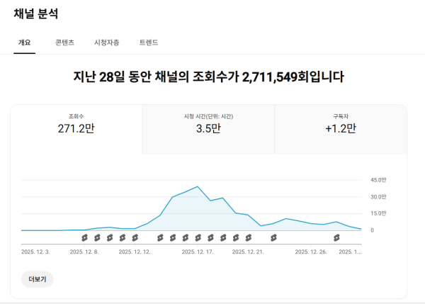 직접 구독자 모은 국내채널에 조회수 잘나오구요