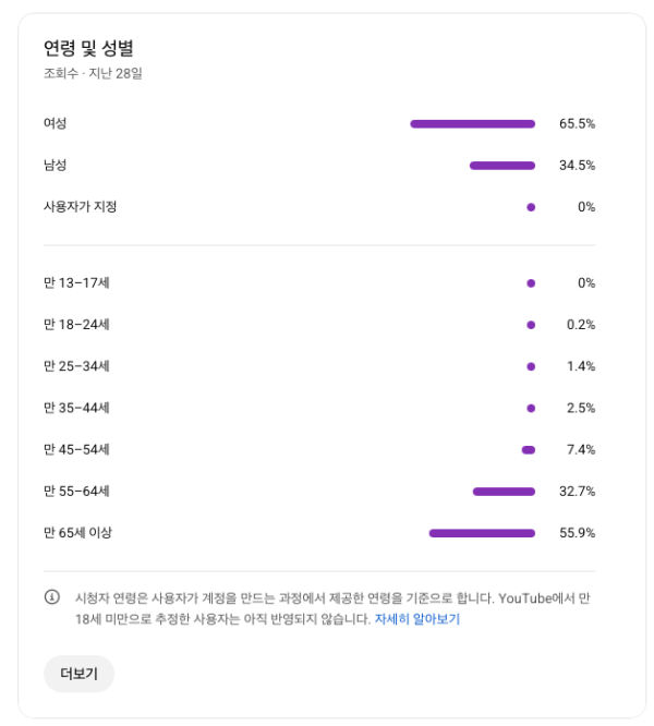 경고 및 위험 없고, 50~60대 시니어 구독자로 이루어진 쇼츠채널입니다
