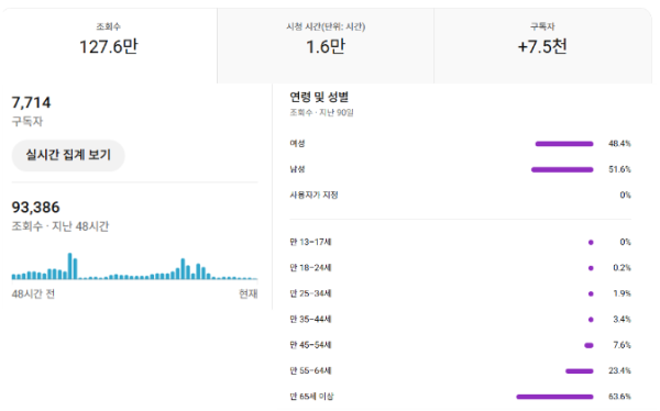 국내 구독자로만 이루어진 시니어 채널이고 쇼츠로 키웠습니다.