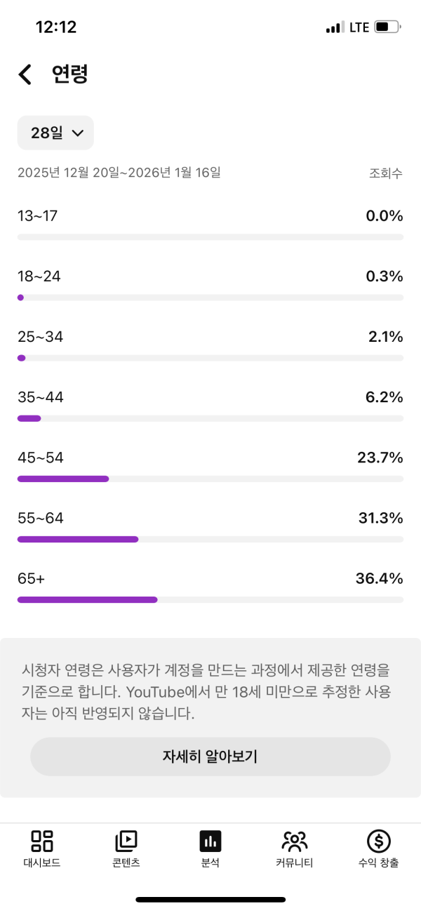 시니어 타깃 롱폼 콘텐츠로 전환해 운영하실 분께 적합한 채널입니다.