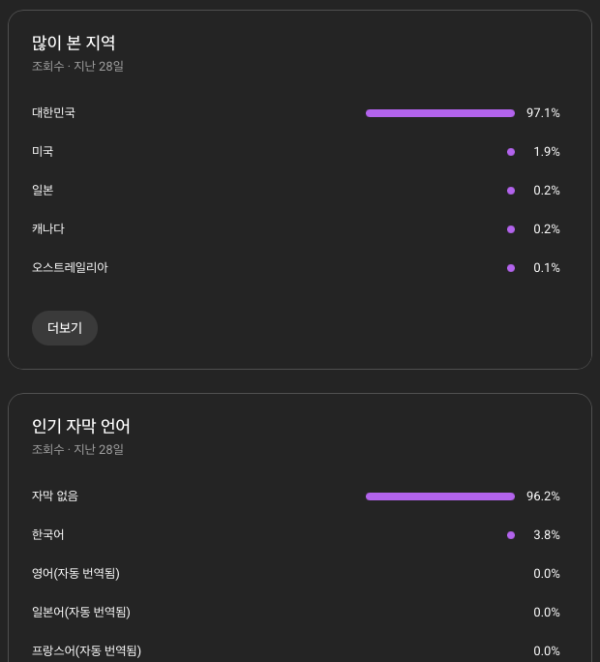 가장 최근 콘텐츠 2건의 조회수는 각각 100만과 200만이 넘습니다